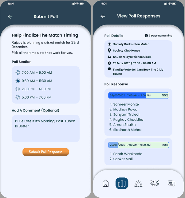 Run quick polls for availability, and find missing players across your club or city.